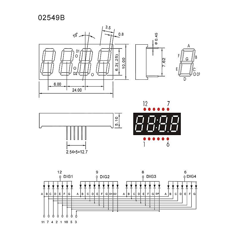 產(chǎn)品名稱0.25英寸 4位數(shù)碼管