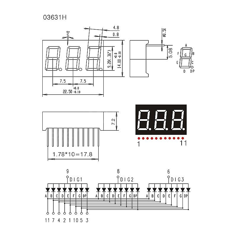 產(chǎn)品名稱0.36英寸 3位數(shù)碼管